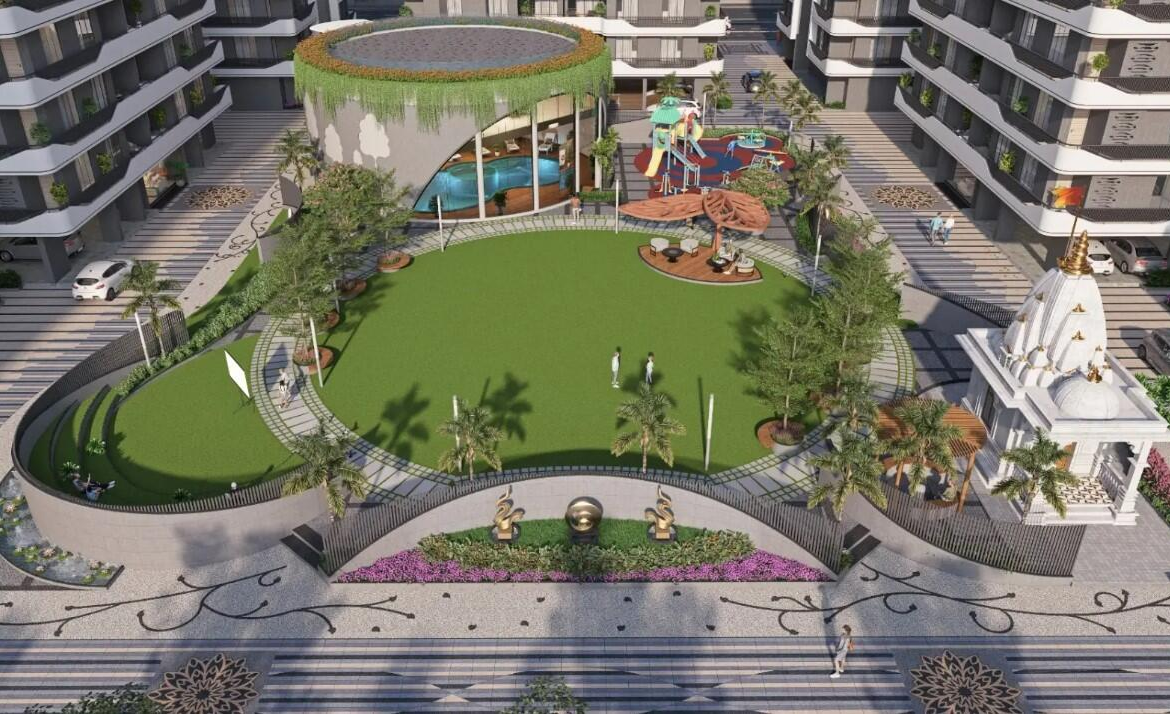 The project offers easy access to VIP Road, Udhana, and major commercial hubs of the city. It is surrounded by schools, hospitals, shopping centers, and daily convenience stores, making it a practical location for families.